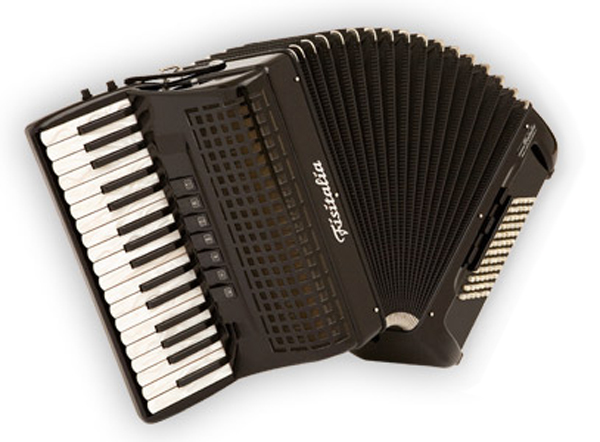 Трехголосый готово-выборный аккордеон Fisitalia 34,34 FB Кол-во клавиш справа: 34. Кол-во клавиш слева: 72. Кол-во регистров справа: 5. Кол-во регистров слева: 2. Кол-во басовых голосов: 4. Вес: 6,5 кг. Звучание мелодии от «Соль» до «Ми»