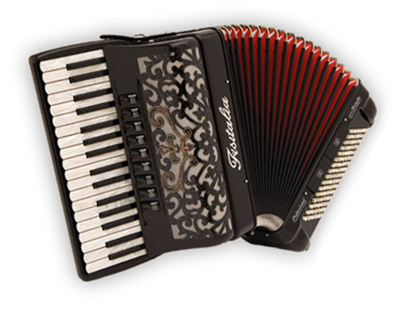 Четырехголосый профессиональный аккордеон Fisitalia 34.44 TC с голосами ручной работы. Кол-во клавиш справа: 34. Кол-во клавиш слева: 96. Кол-во регистров справа: 9. Кол-во регистров слева: 2. Кол-во басовых голосов: 4. Вес: 8 кг. Звучание мелодии от «Фа» до «Фа»