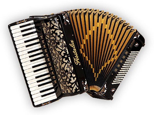Четырехголосый стандартный аккордеон Fisitalia 37.45-S. Кол-во клавиш справа: 37. Кол-во клавиш слева: 96. Кол-во регистров справа: 11. Кол-во регистров слева: 5. Кол-во басовых голосов: 5. Вес: 9,8 кг. Звучание мелодии от «Фа» до «Фа»