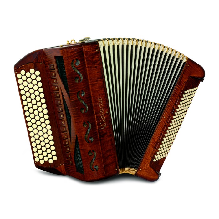87 кнопок, 47 нот, 4 голосов, 1 ломаная дека, 15 регистровЛевая рука: